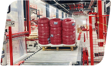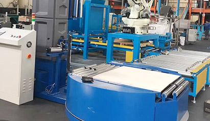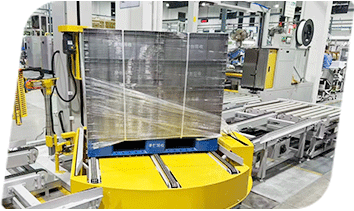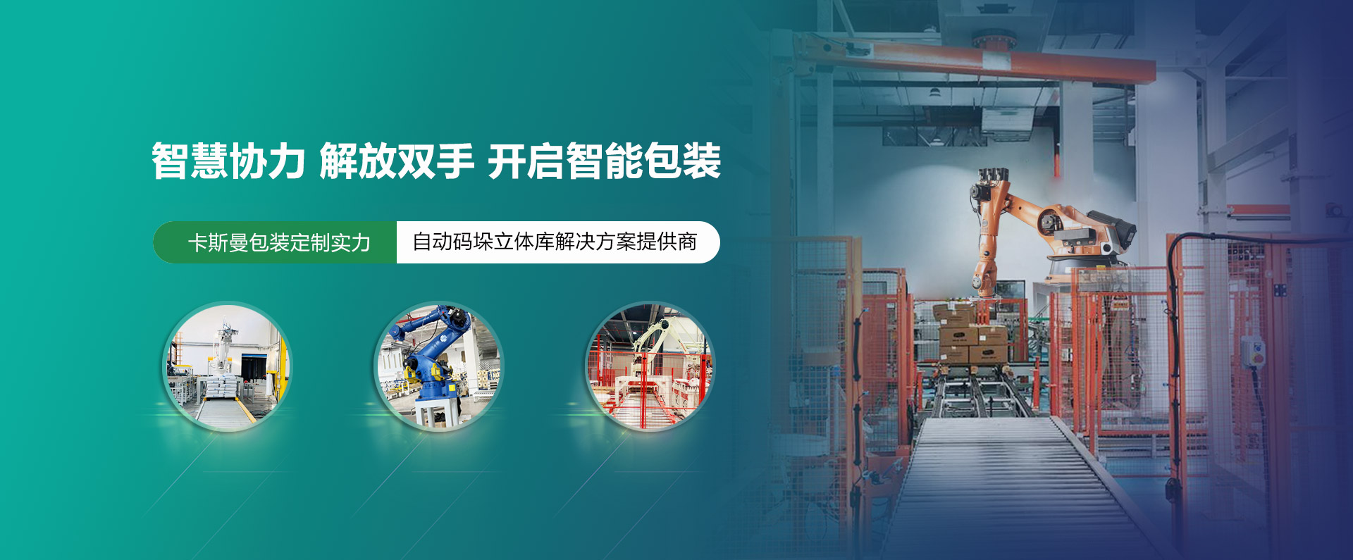 基于现阶段市场需求新开发的一款配套流水线的全自动缠绕包装机,自动包装整线方案:自动封箱机+自动缠绕机+码垛机+AGV移动车+立体库。