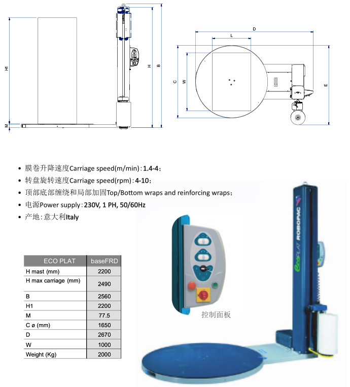 | 缠绕膜宽度,内芯和外径 | 500 / 76 / 230-300mm |